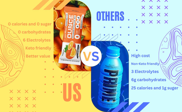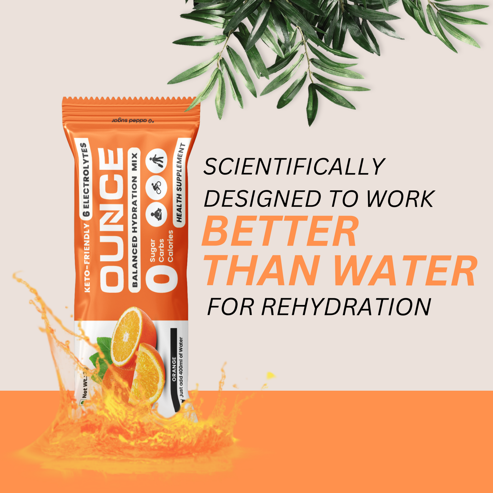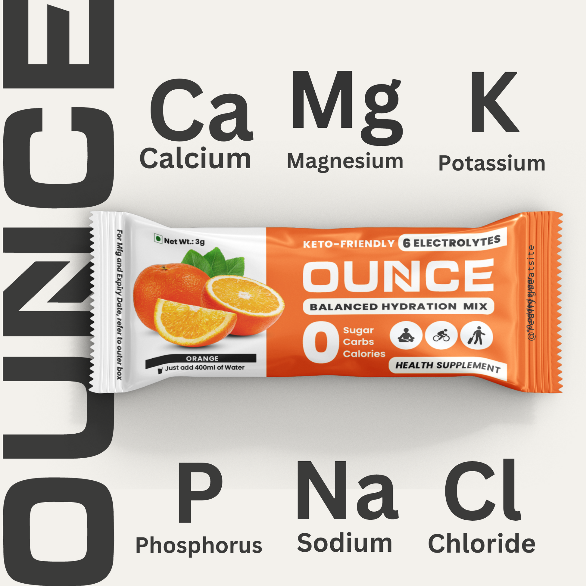 Refreshing Keto-Friendly Electrolyte Orange Water Flavour Powder: This sugar-free, zero-calorie formula skips the unnecessary carbs and maltodextrin found in most electrolyte drinks. Enjoy the delicious taste of orange while replenishing your electrolytes and staying hydrated with our Ounce keto-friendly Electrolyte Powder, making it a convenient and flavorful option for your hydration needs and perfect for those following a ketogenic or low-carb diet.